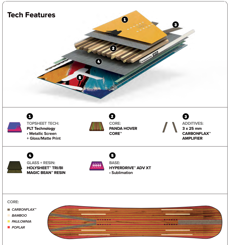 Designed to charge the resort and sidecountry hits like Arthur, this series combines a lightweight and extremely durable Panda Hover Core™ with CarbonFlax™ Amplifiers for tons of pop. The high-speed performance of the Aeronaut has been upgraded for 2025 with an all-new, tougher, HyperDrive™ ADV XT base.