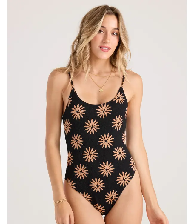 The Bright & Sol 1pc brings skimpy coverage with a pucker texture and thin, adjustable straps that dial in your fit. A black base blooms with orange florals, while a high-cut leg and low back keep the heat high. Made with recycled polyester and stretch fo Read more.