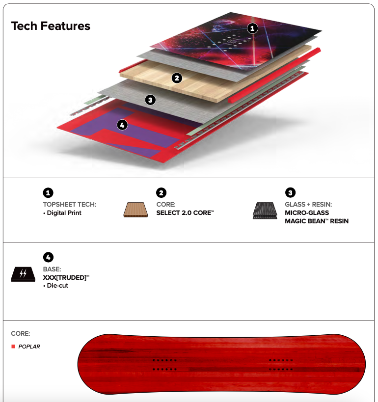 This construction utilizes a Select 2.0 Core™ in combination with a fast, yet easy to maintain XXX[TRUDED]™ base, providing a durable yet lightweight board to allow girls to play on fun stuff like park jumps, bumps, boxes, and freestyle terrain.