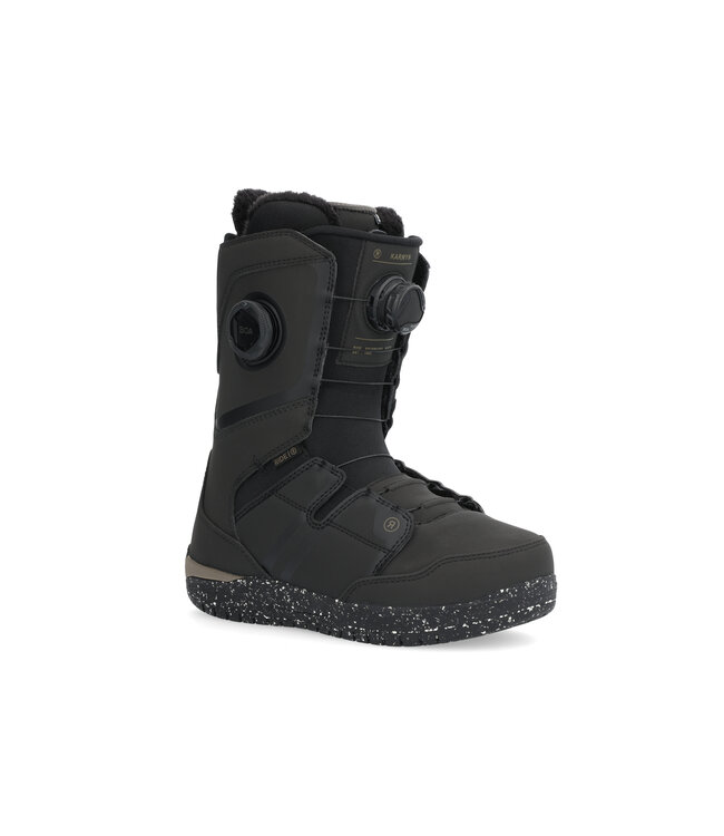The Karmyn Zonal is a boot packed with features thatās a pleasure to look down and see on top of your board. Fitted with BOAĀ® Zonal Fit System, which is a dial-activated fit system that allows for a precise closure in two zones, the Karmyn Zonal will fit perfectly the first time you slip your foot into it. Our liner integrated Tongue Tied⢠Hybrid Harness, closes the liner lace harness and Tongue Tied⢠system assuring an optimal fit. The Impact Rubber Cup Sole with Ride Fusion Rubber uses recycled premium rubber and +Slime Midsole for traction and cushioning. C.A.T. technology allows for a custom fit in the calf zone for increased comfort. The Karmyn Zonal is designed as a medium flexing freestyle snowboard boot for every rider out there.