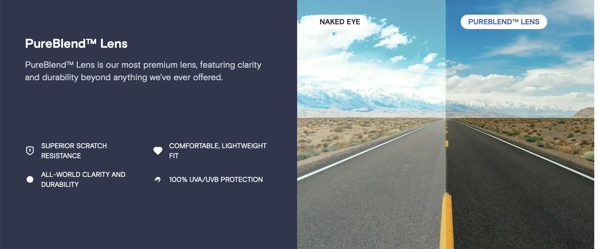 Lens Technology: PureBlend™ Lenses — superior scratch resistance and world-class clarity.