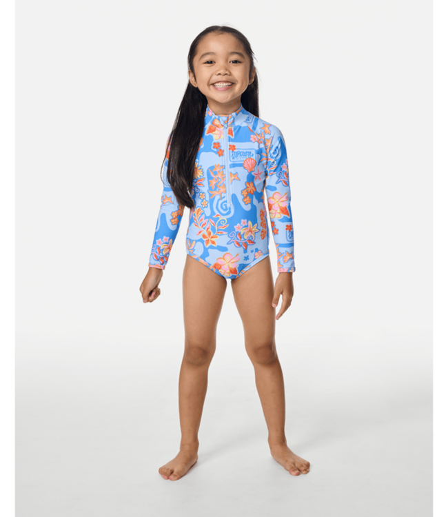 UPF 50+ sun protection and a front zip make the Surf Magic Surfsuit - Kids a functional surf piece, finished with all-over yardage print and recycled fabric for adventure-ready style.