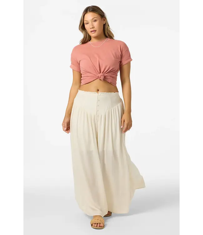 Flowy, feminine, and full of movement. The O'Neill Tryston Maxi Skirt is a seasonal standout designed for effortless elegance. Crafted from lightweight, breathable fabric, this skirt features a tiered silhouette that creates beautiful volume and a graceful drape. The high-rise smocked waistband ensures a comfortable, secure fit while adding a touch of texture to the design. Whether paired with a bikini top for the beach or a fitted tank for dinner, the Tryston brings a romantic, coastal vibe to any look.